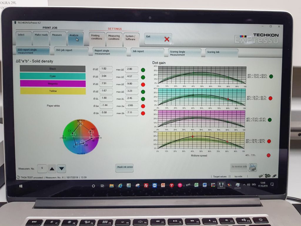 Continua la ricerca del Gruppo di Lavoro sulla polimerizzazione UV, che in questi giorni è impegnato con l'analisi dei dati e dei campioni stampati presso la IST di Nürtingen, in Germania. I test, effettuati sia su carta patinata che usomano, sono stati effettuati su una macchina offset che dispone di tutte e tre le tipologie di lampade UV. I tecnici potranno aggiungere al loro lavoro di ricerca questa parte estremamente concreta che sarà integrata all'interno del TAGA.DOC.19.
